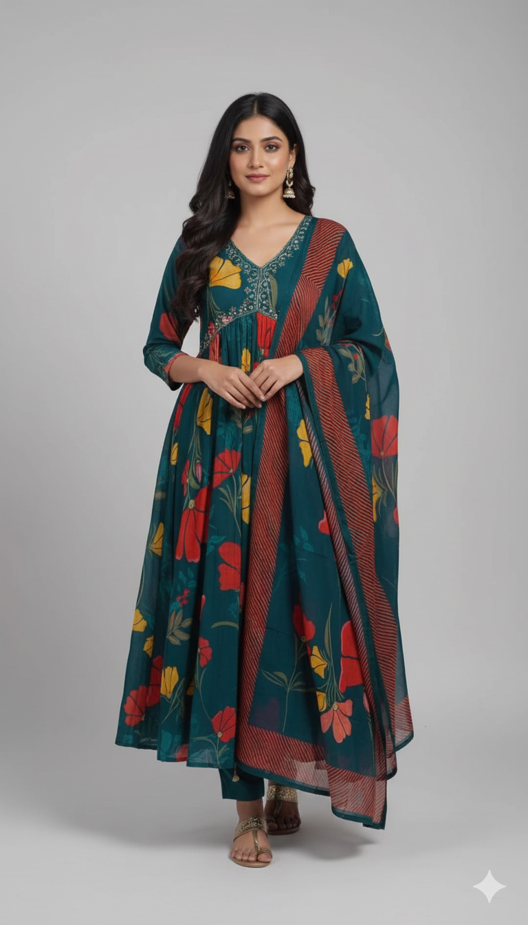 “This blue Aliya cut dress fits perfectly and feels so comfortable. The dupatta adds a lovely finishing touch. It’s my go-to outfit for festive days!”
