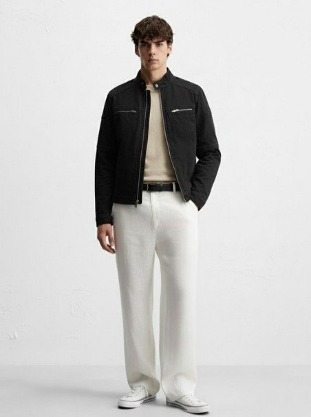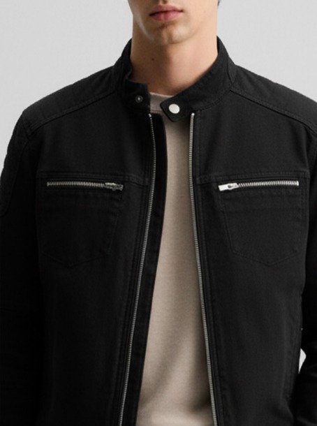 Pair the jacket with a black T-shirt, black slim jeans, and black leather boots. To make this work, mix your textures: use a matte cotton T-shirt, the textured denim jacket, and polished leather boots so the outfit doesn’t look flat.