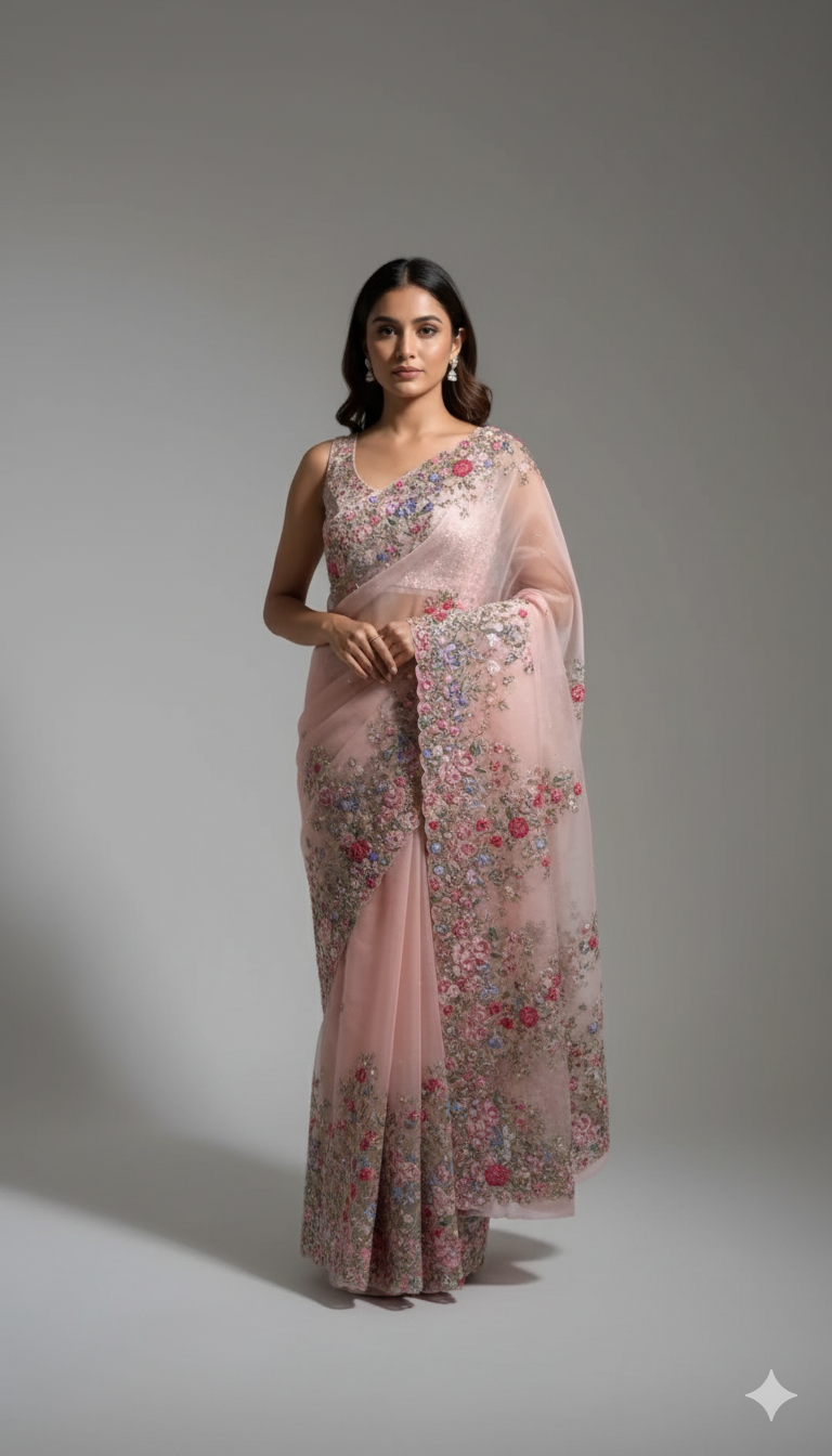 • Full sequin embellishments throughout the saree for a rich, textured look