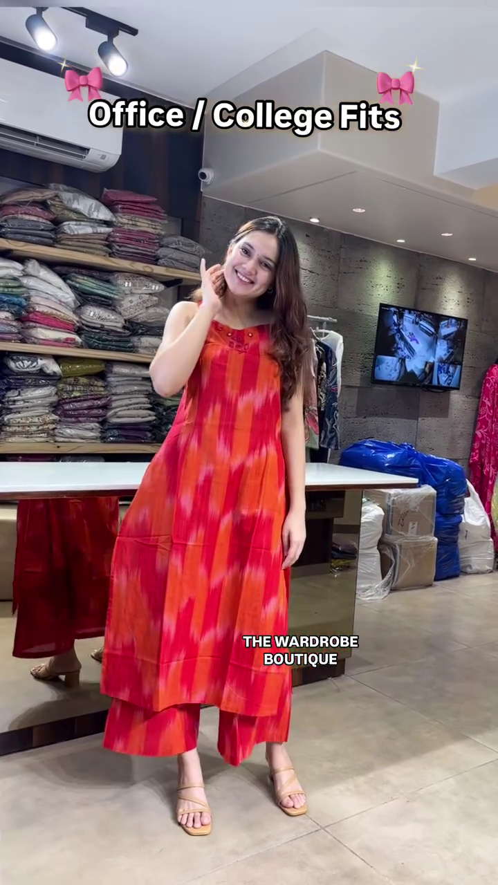 Versatile, comfortable, and effortlessly chic — this Ikat Kurta Palazzo Set is a must-have staple for your office and college wardrobe.