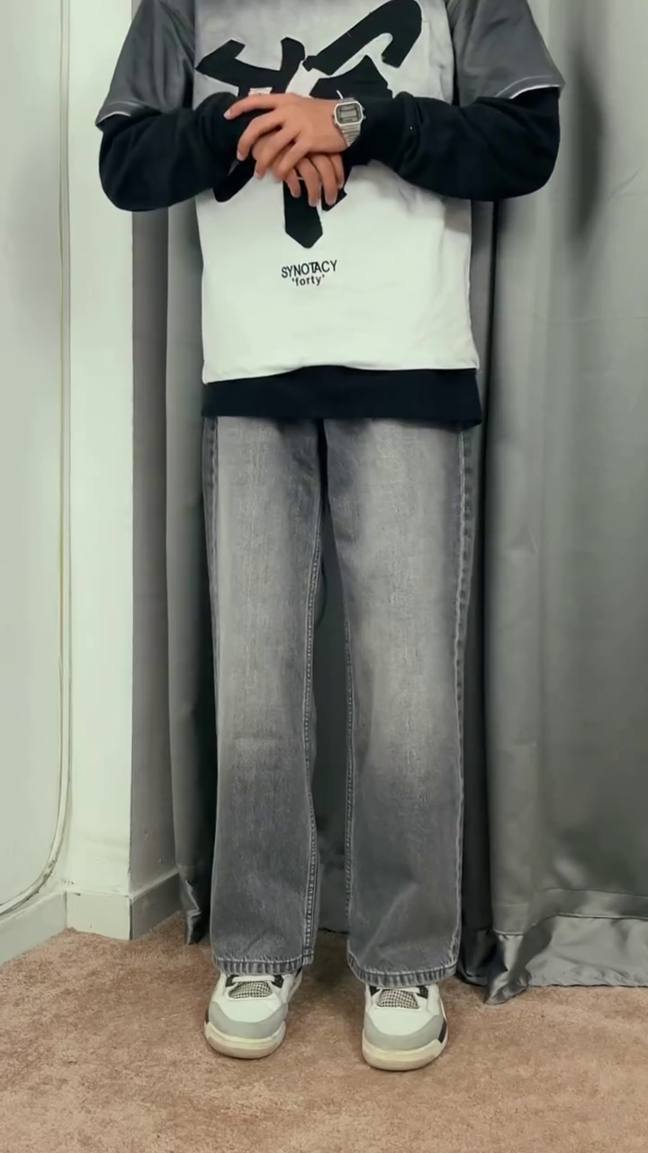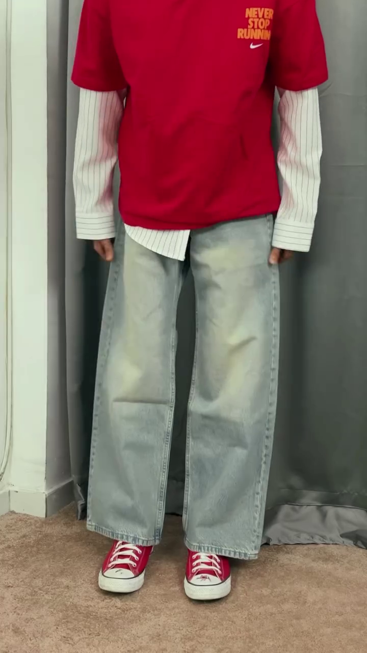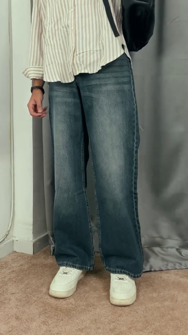 The loose-fit denim offers freedom of movement while creating a bold, fashion-forward statement inspired by modern street culture. Together, the striped shirt and baggy jeans create a balanced outfit that feels casual, confident, and endlessly wearable.